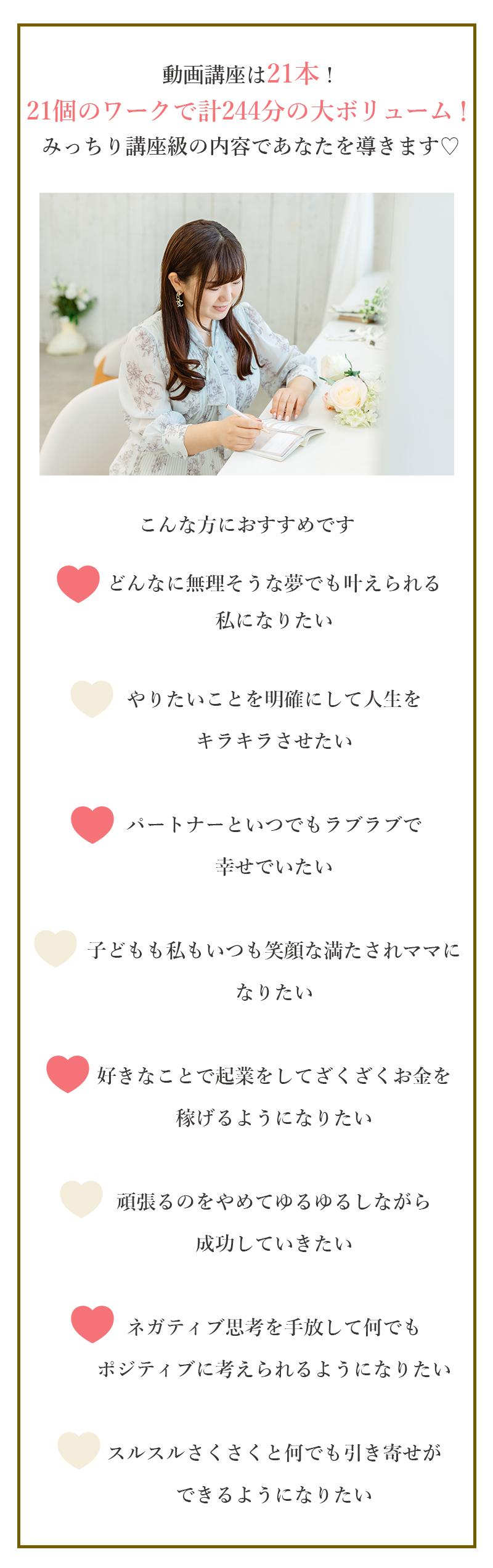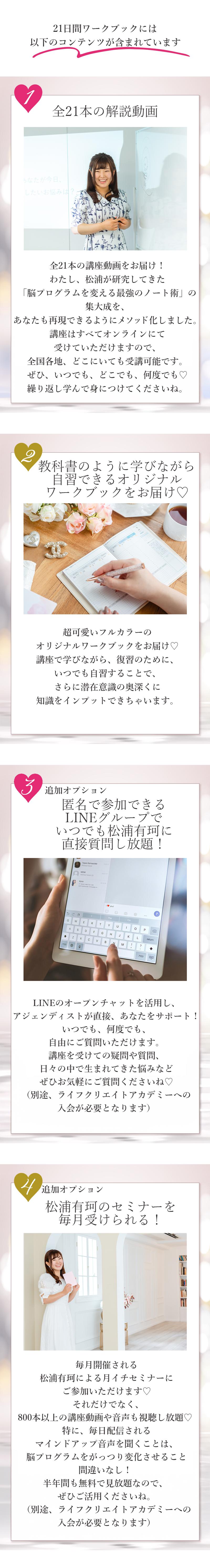 1.オリジナルワークブック 2.21本の動画講座の視聴 |